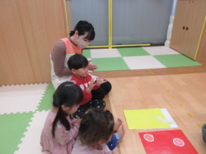 その他にも天気のカードを筒状にして、中を覗いて天気を当てるゲームもみんな興味津々に覗いて楽しんでいました♪