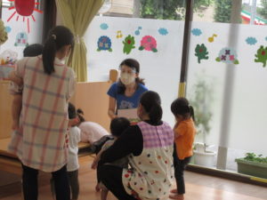 大好きな英語の先生が保育園に来ると「グッドモーニング~♪」と元気に挨拶することが出来ていました。
