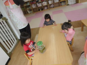 朝おやつを食べ、梅ジュースをフリフリしました。