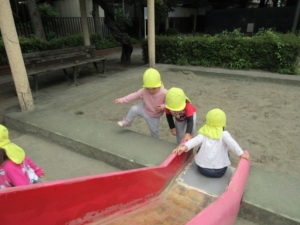 今日は梅雨時期独特の蒸し暑い一日でしたが、子ども達はいつもと変わらず元気いっぱいでした。