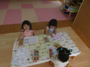 ひまわり組さんはお絵かきをしました。動物の所に色が塗れていて上手でした。