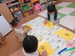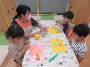 ひまわり組さんは粘土遊びをしました。型を抜いたり道具の使い方がとっても上手でした。