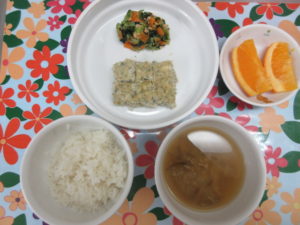 松風焼きは豆腐が入っておりふわふわジューシーで、青のりの香りが良く子どもたちにも人気でした☆