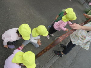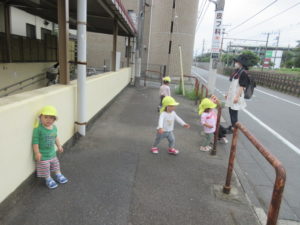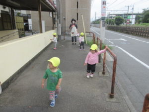 今日は午前おやつを食べた後、みんなでお散歩に行きましたが、途中で雨が降り始めてしまったので