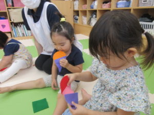 ハートの形はどれかな?みんな二つの形の違いを見分けることができていました!すごいね♪