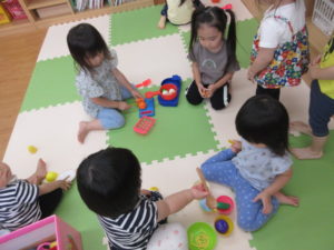 朝の自由遊びの時間ではおままごとを楽しみました♪