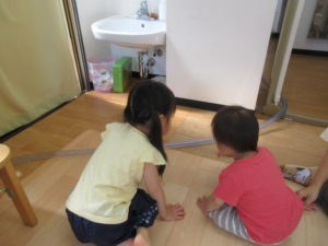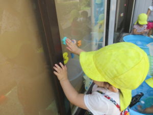 また、先生が水遊びの準備をしている様子をみて楽しそうな子ども達♪