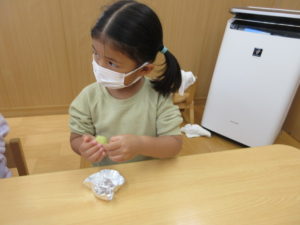 みんな上手に丸めていき、それぞれ違った形になっていきます。個性がよく出ていました。