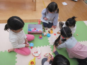 そら組は給食後、囲んでケーキ屋さんです🍰