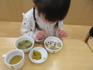 鬼除け汁に豆が入っているのを見つけると「お腹の鬼をやっつけよう!」と言いながらよく食べていましたよ♪
