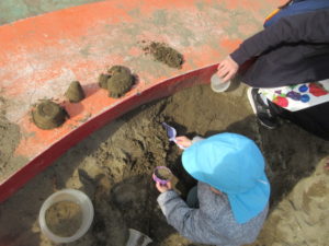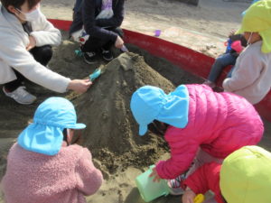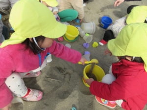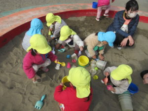 お砂場で遊ぶことを伝えると嬉しそうにニコニコな子ども達😊