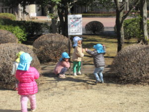 朝のおやつを食べた後にみんなでお散歩へ出かけました。