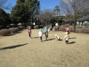 芝生の上で思いっきり走ったり、落ち葉を拾ったり、思い思いに楽しみました♪
