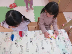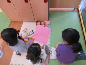 製作が終わったお友達は、お人形さんで遊んで待っていました😊