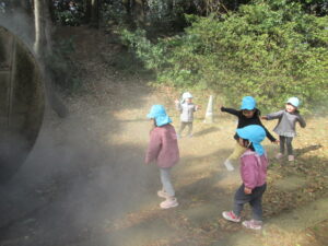 みんなで霧の中に飛び込んで「気持ちいいね~♪」と嬉しそうな子ども達です。