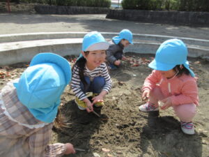 お砂場では、みんな工事ごっこやお宝探しをしていました。