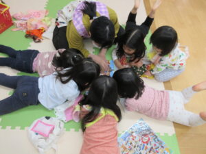 お部屋に帰ってからは、お人形でごっこ遊びを楽しんだり間違え探しにも夢中になっていました😊