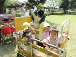 広場で遊んでいたひまわり組さんにも遭遇し、みんなで「ばいばい♪またね♪」と手を振り合いました🥰