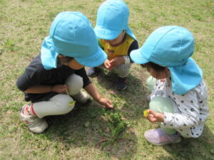たんぽぽでも一つ一つ大きさや花びらの形が少し違っていることに気付いて、保育者に伝えてくれるお友達もいました😊