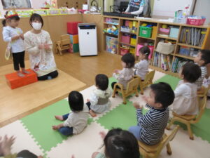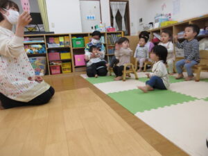 保育園での行事は初めてのお友達もいたので、「何が始まるんだろう・・?」と不思議そうな表情を見せてくれる姿もありました♪