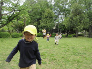 芝生の上を、たくさん歩いたり、走ったりして、たくさん体を動かしてきました!!! (早)