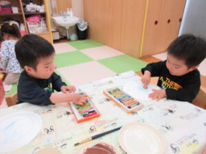 お友だちが使っている色と同じ色を真似して使いたがる様子もありました😊