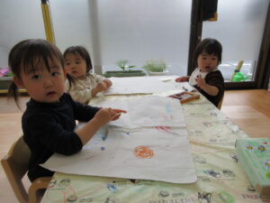 大きな紙に自由にシールを貼ったり、ダイナミックにお絵描きを楽しんでいました😊