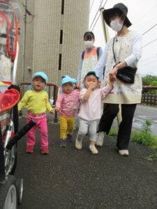 通り過ぎる電車に手を振ったり、工事車両や水たまりにも興味津々な子どもたちでしたよ。