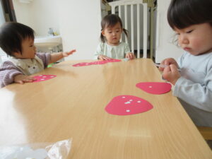 お部屋に戻ってからは、ひまわり組さんはいちごの製作!