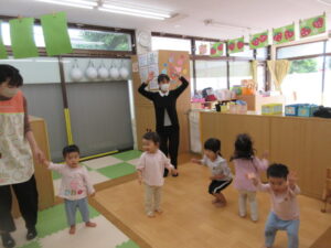 みんなリトミックの活動にも慣れてきて、表情も柔らかく笑顔がたくさん見られます😊