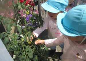 赤ちゃんサイズの小さなトマトの実が成っていて、子ども達は毎日とても可愛がってくれています💗