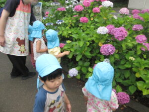 散歩道の途中、紫陽花がとても綺麗に咲いていました。