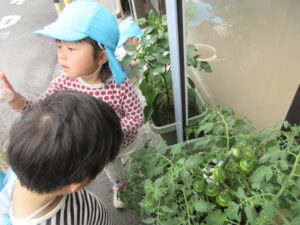 そら組さんは、赤くなったトマトを収穫しました🍅