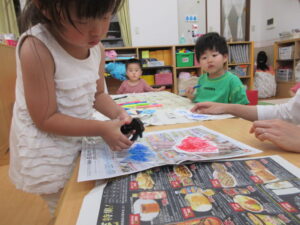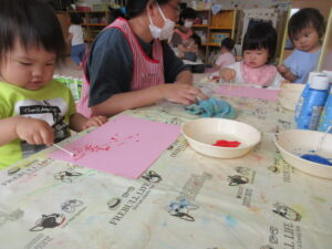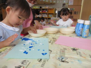 トントンとスタンプをして模様付け♪