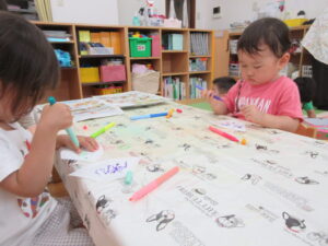 今日は、ひまわり組さんもそら組さんも
