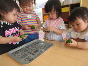 最後の一枚の固い部分も、保育士や調理の先生と一緒に