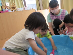みんなそれぞれ気に入った玩具を手に取り、水遊びを満喫していました♪