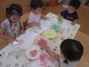 そら組さんは泡と絵具を使った制作も楽しみました🍦!