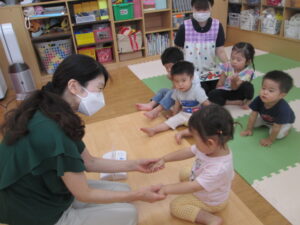 そら組さんは音楽に合わせて先生と手を繋いで舟を漕ぐ動きを楽しみました✨