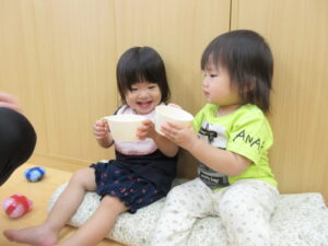 お友だちと「かんぱーい♪」をしてにっこり笑顔で嬉しそうでした🥰
