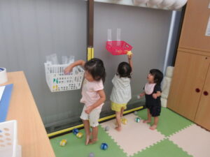 みんな一生懸命背伸びをしてボールを入れようと夢中でした!✨