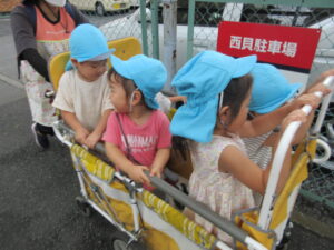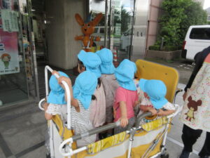 途中で雨が降ってきてしまったけれど、雨宿りをしてから、元気に園に帰ってきました! (早)