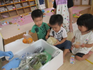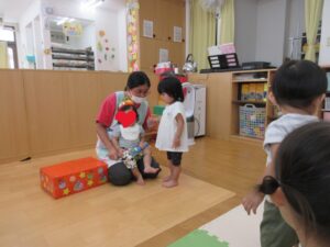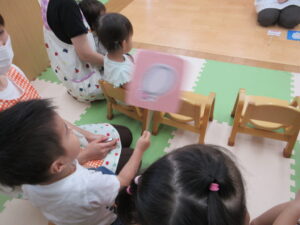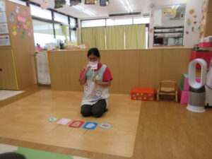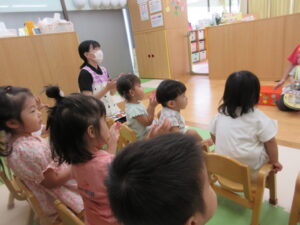 朝のお集まりで歌を歌った後、おやつを食べて、そのあとはお誕生日会をしました。