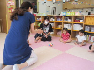 ひまわり組のボール転がしも初めは上手く返せなかったのですが、今ではお得意の物になりました。