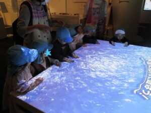 センサーに反応して、手を動かすと水が動く体験も楽しみました♪