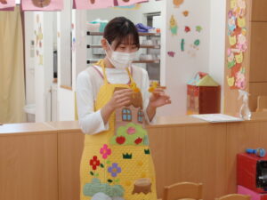 好きなくだものは?「ぶどう」「りんご!」。