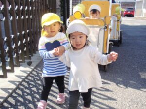 誕生日会後には散歩に行きました。ひまわり組は園周辺。そら組は幼児公園へ。