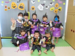 保育園に帰ってからは、みんなで「かぼちゃチャチャ♪」という曲でハロウィンダンスを楽しみました!