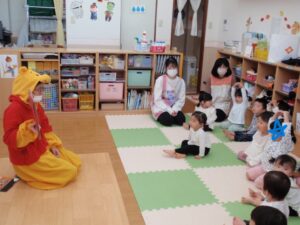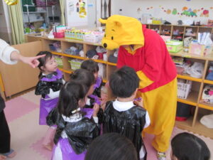先生がプーさんの仮装をして登場すると「かわいいー♪」とみんな褒めてくれていました♪