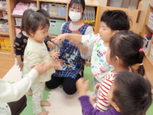 みんなじゃんけんのルールを覚えて、「じゃんけんぽん!」と言って子どもたち同士でじゃんけんが成立するようになってきましたよ✨